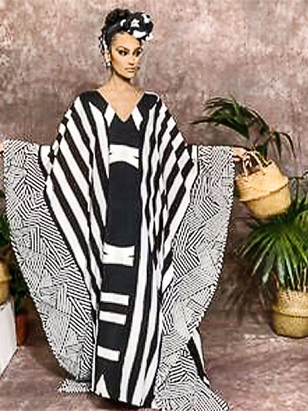 2023 Indie Folk Striped Long Kaftan Casual V-Neck Summer Maxi Dress Women Clothing Beach Wear Swim Suit Cover Up A1055