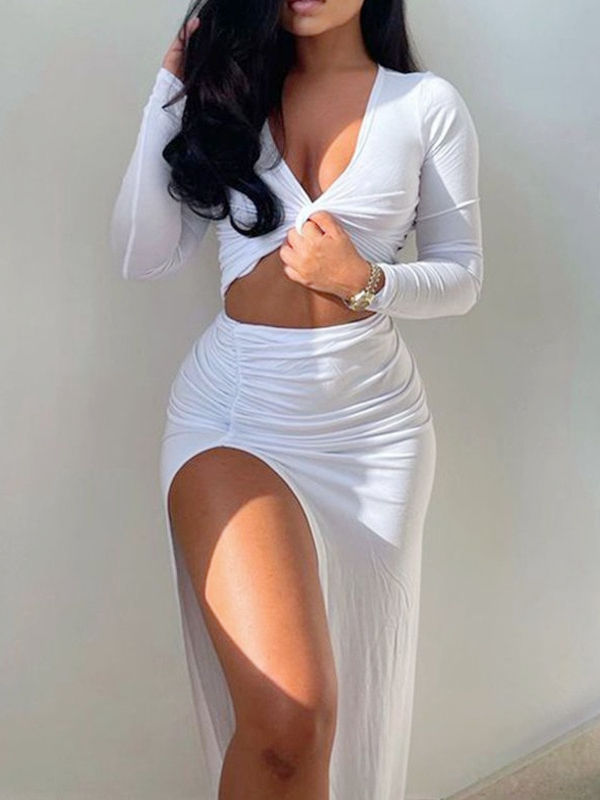 Autumn And Winter European Women’s Clothing Solid Color Top With Irregular Split Skirt Two-Piece Suit