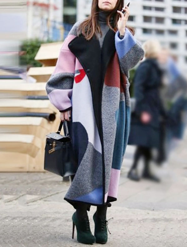 Autumn And Winter Fashion Color Matching Lapel Digital Printing Reversible Coat Coat Women