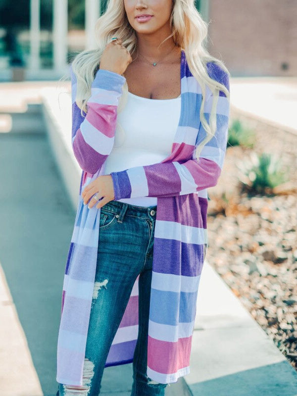 Autumn And Winter Mid-Length Fashion Striped Loose Knitted Cardigan Women