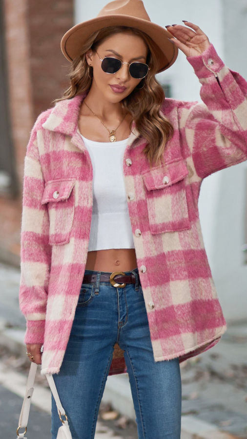 Autumn And Winter Plaid Mohair Coat Woolen Overcoat