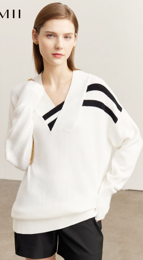 Autumn Stripped Sweater For Women Causal Loose Vneck Full Sleeve Tops Patchwork Female Clothes 12270539