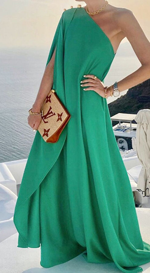 Boho Asymmetrical Solid Color Dress 2023 One Shoulder Straped Bodycon Midi Dress Women Casual Beach Wear Maxi Dress A1758