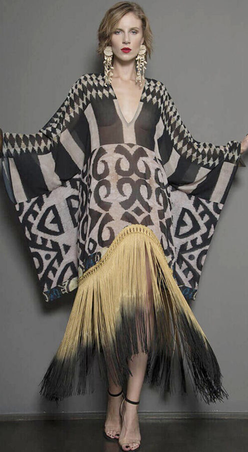 Boho Code Print Tassel Loose Dress Casual Autumn Vacation Dress Women Clothes Skirt Splicing Irregular Dresses A1936