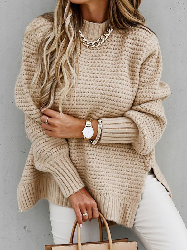 Casual Half High Neck Pullovers Winter Women Knitted Sweater Fashion Batwing Sleeve Coarse Knit Solid Female Sweaters