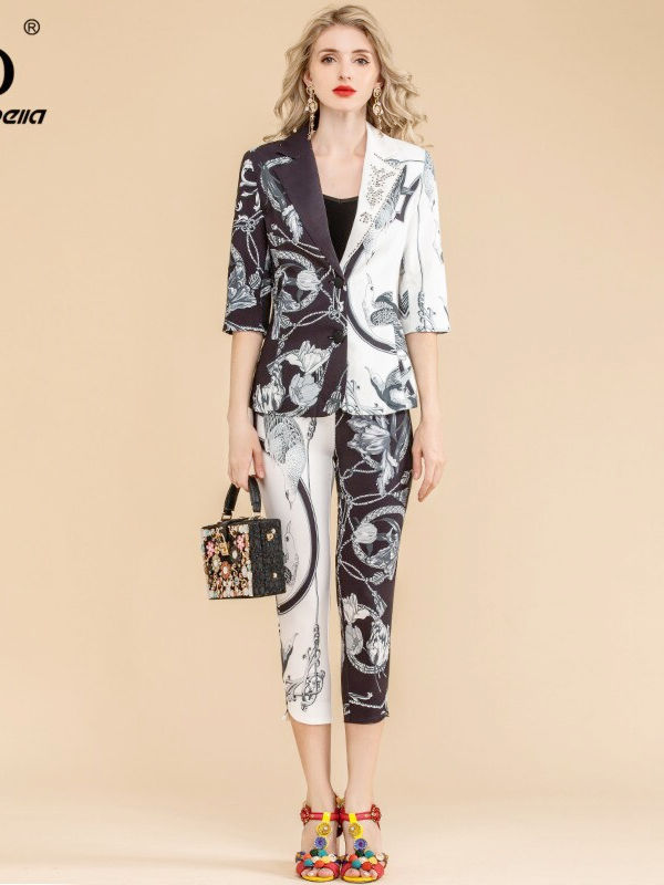 Designer Autumn Chic Print Pants Two Piece Sets Women’s Fashion Streetwear Jacket Coat And Slim Long Pants Suits