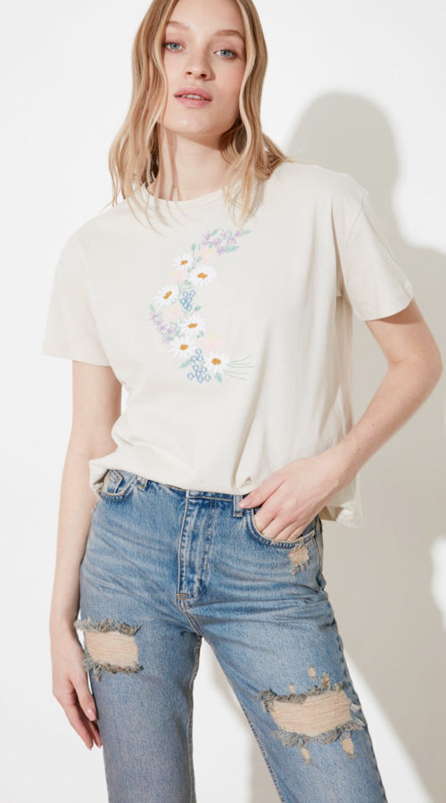 Embroidered Semifitted Knitted T-Shirt Twoss19pb0018