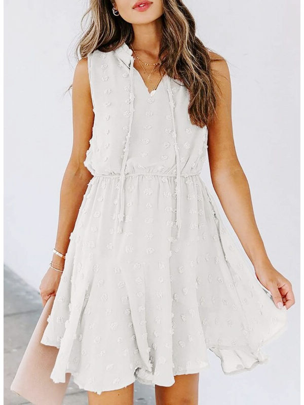 European And American Summer Women’s Clothing Hollowed Fashion Solid Color Dot Dress Lace-Up Waist-Controlled Slimming Breathabl