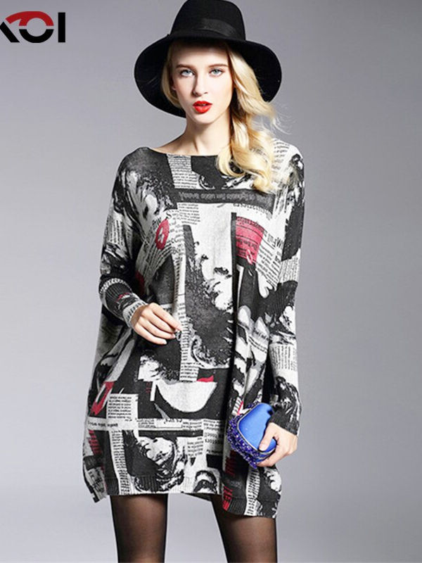 Fashion Knitted Sweaters Women’s Clothing Pullovers Jumpers Slash Neck Batwing Sleeve Long Print Sweater Shirts