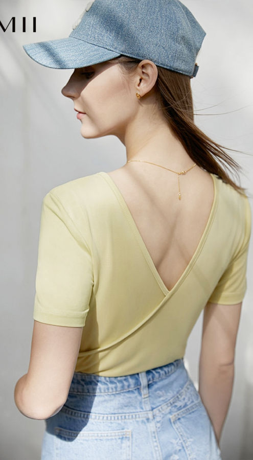 Fashion T-Shirts For Women Summer O-Neck Letter Print Slim Back V-Neck Temperament Women Clothes 12240133