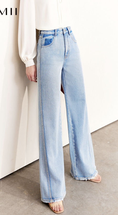 Jeans Women Autumn Casual High Waist 100% Cotton Wide Leg Pants Ins Korean Straight Denim Blue Trousers 12270354