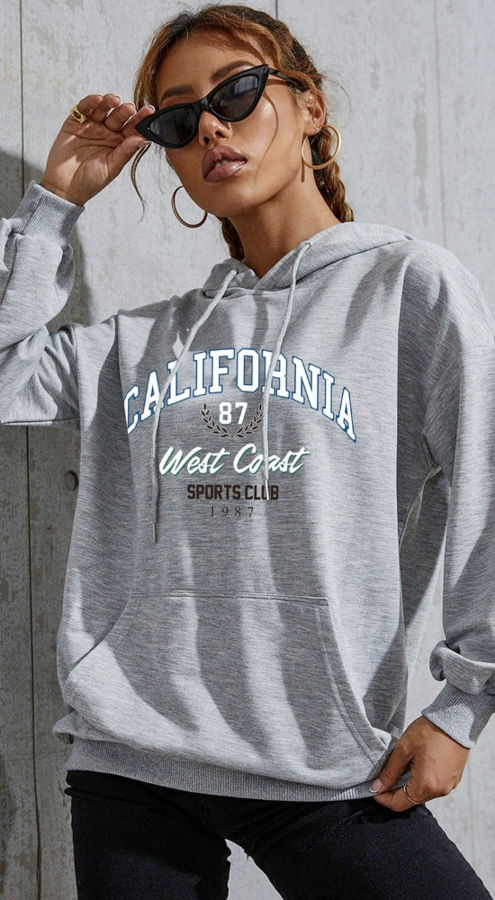 Letter Print Drop-Shoulder Sleeve With Kangaroo Pockets Hoodies Women Polyester Cotton Autumn Winter Casual Hooded Sweatshirts