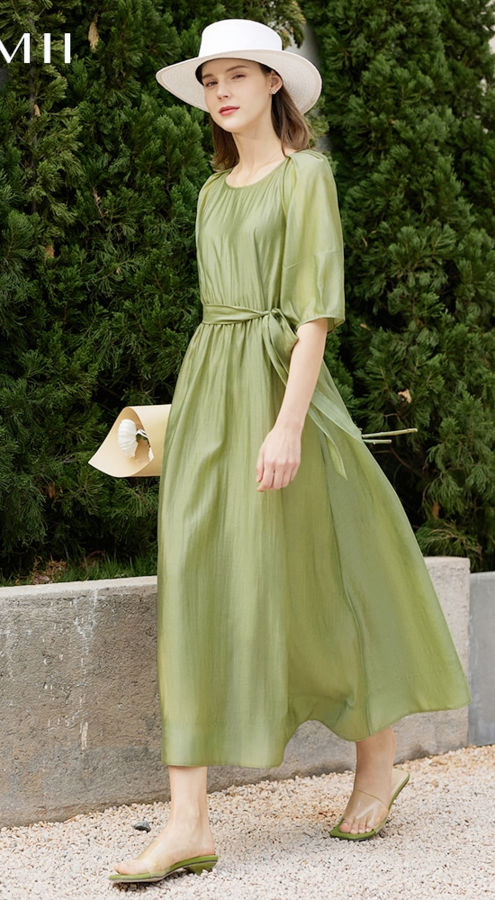 Long Dress For Women Summer Loose French Style Puff Sleeve O-Neck Temperament A-Line Vestidos 12240450