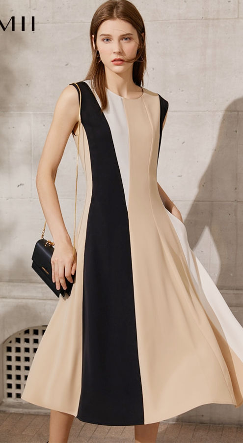 Midi Dresses For Women Autumn Temperament Elegant Panelled Commuter Casual Slim A-Line Vestido 12140066