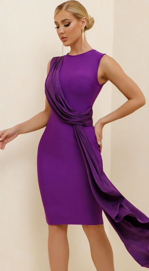 Midi Purple Bodycon Dress Evening Party Elegant Birthday Club Outfits Summer Fashion