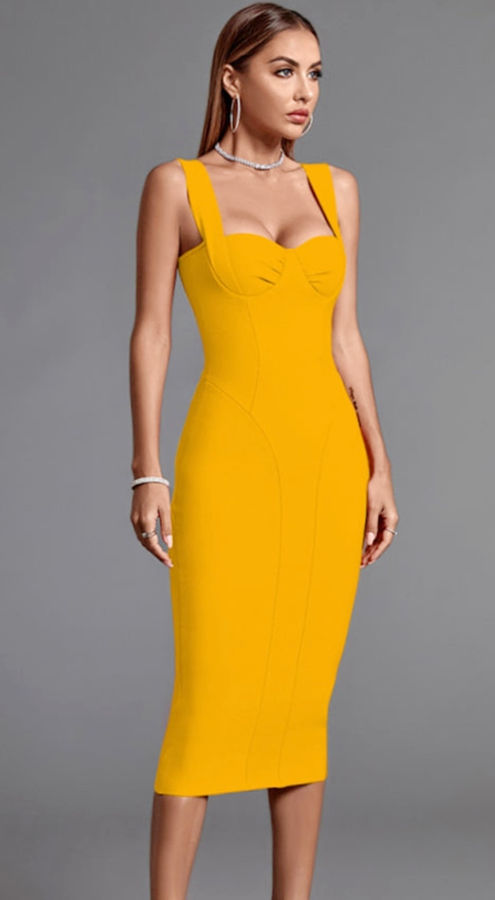 Midi Women’s Orange Bodycon Dress Elegant Green Evening Club Party Dress High Quality Summer Fashion