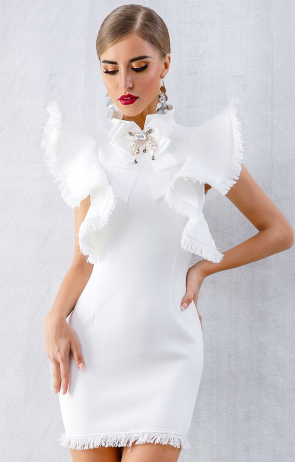 Newest Fashion Celebrity Party Bodycon Dress Women Butterfly Sleeve O-Neck Ruffles Nightclub Dress Women Vestidos