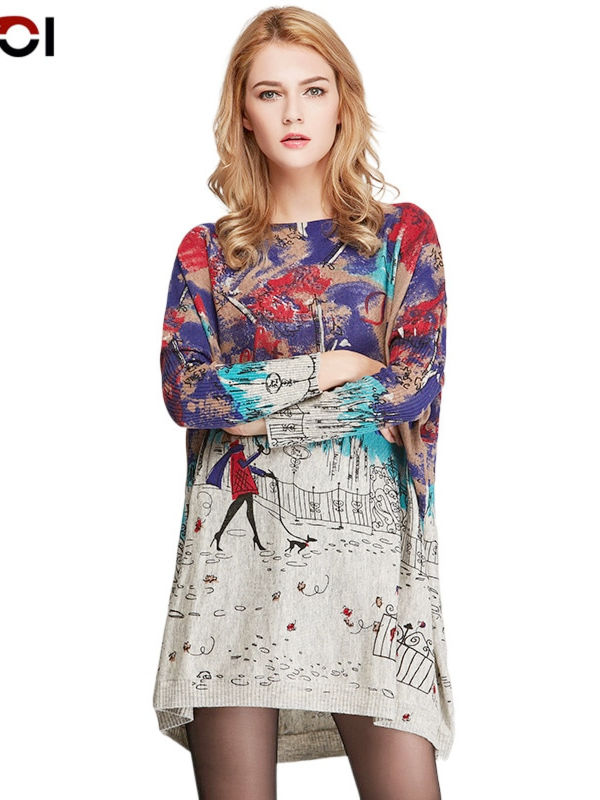 Oversize Sweater Women Casual Pull Femme Batwing Sleeve Patchwork Print Long Sweaters Pullovers Fashion Loose Clothing