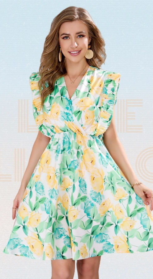 Prairie Chic Floral Print Wrap V-Neck Flared Hem Dress Women Summer Raglan Sleeve Flounce A-Line Midi Dress Vintage Robe Femme
