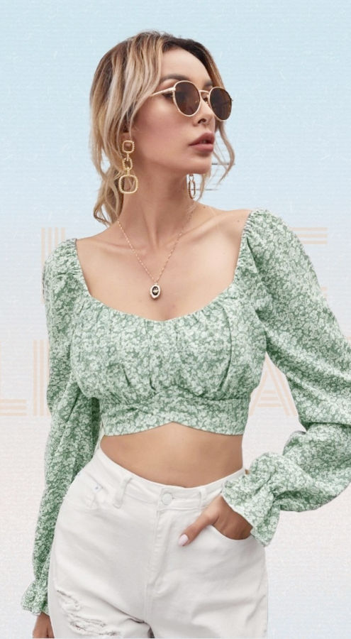 Prairie Chic Slim Chiffon Blouses Square Collar Butterfly Sleeve Backless Single-Piece Set Sweet Top Spring Pullover Tops