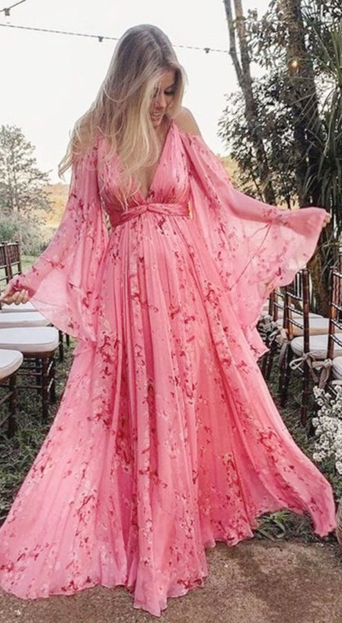 Print Deep V-Neck Butterfly Sleeve Maxi Dress High Waist Long A-Line Pleated Dress Casual Women Summer Holiday Dress A1902