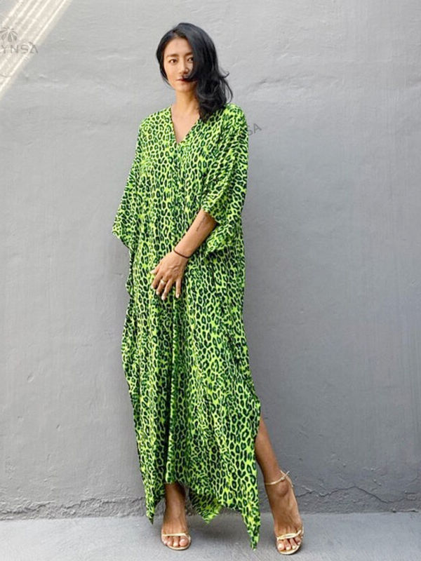 Print Deep V-Neck Dress Batwing Sleeve Long Dresses Women 2023 Summer Dress Beachwear Bohemian Women Kaftan A1045