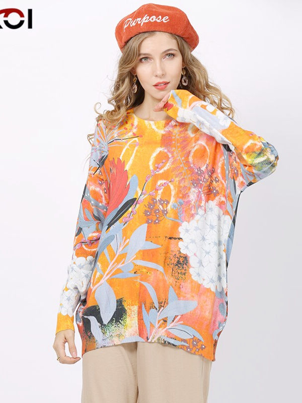 Print Sweater For Women Pullover Spring Full Sleeves O-Neck Jumper Knitted Pull Femme Knitwear Ladies Streetwear
