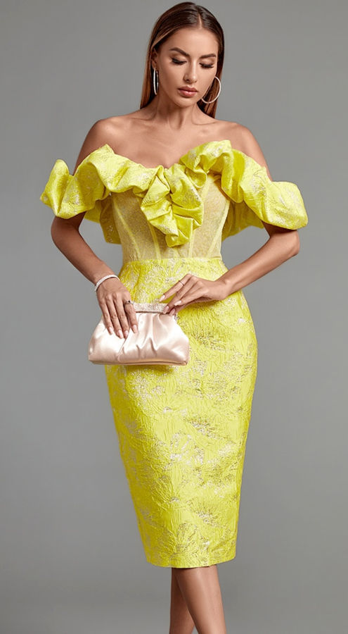 Sequined Party Dress Women’s Yellow Bodycon Dress Elegant Ruffle Evening Club Dress High Quality Summer Outfit