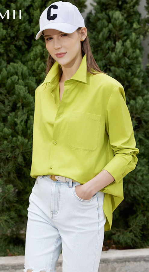 Shirts For Women Fall 100% Cotton Solid Elegant Fashion Shirts Niche Design Casual Clothing Top 12130129
