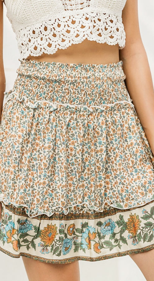 Smocking Elastic High Waist Short Skirts Women Bohemian Floral Print Skirts Female Casual Beach Wear Summer Skirts 2020