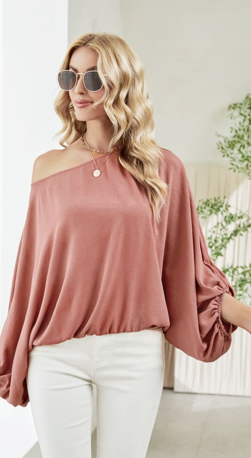 Solid Leaky Shoulder Loose Batwing Sleeve Casual Chiffon Blouses Women Slash Neck Autumn Winter Casual Pullover Blouses