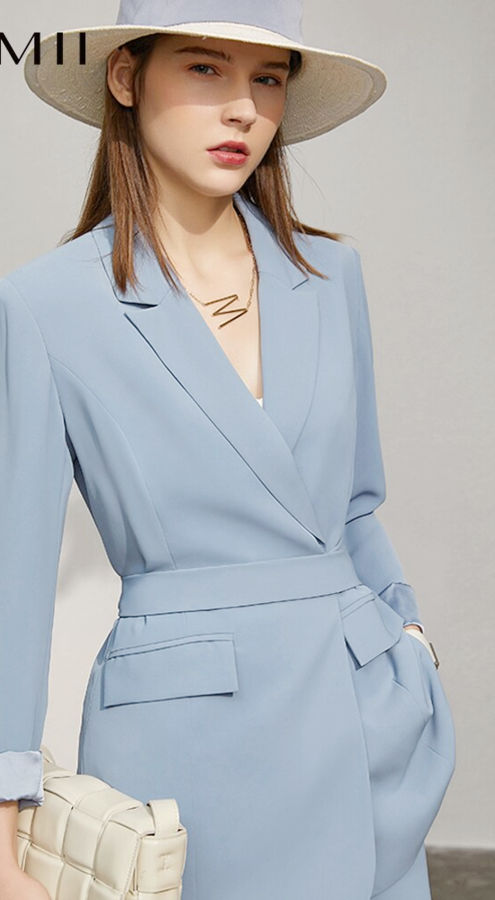 Spring Suit Offical Lady Solid Lapel Full Sleeve Belt Women’s Coat Causal Women’s Suit Pants 12140246