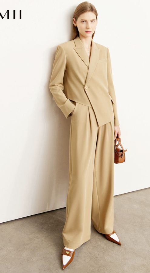 Suit For Women Office Lady Asymmetrical Design Blazer Separately Casual Wide Leg Pants Female 12270425