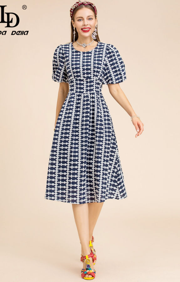 Summer Dress Women’s Puff Sleeve Hollow Out Embroidery Party Vintage Midi Dresses Vestidos