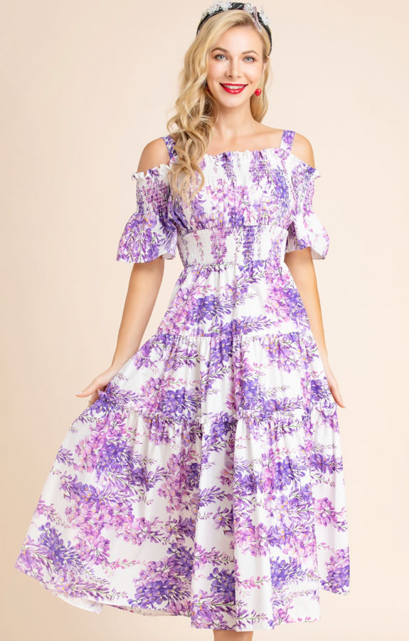Summer Runway Fashion Cotton Dress Women Spaghetti Strap Elastic Waist Floral Print Vacation Elegant Midi Dress