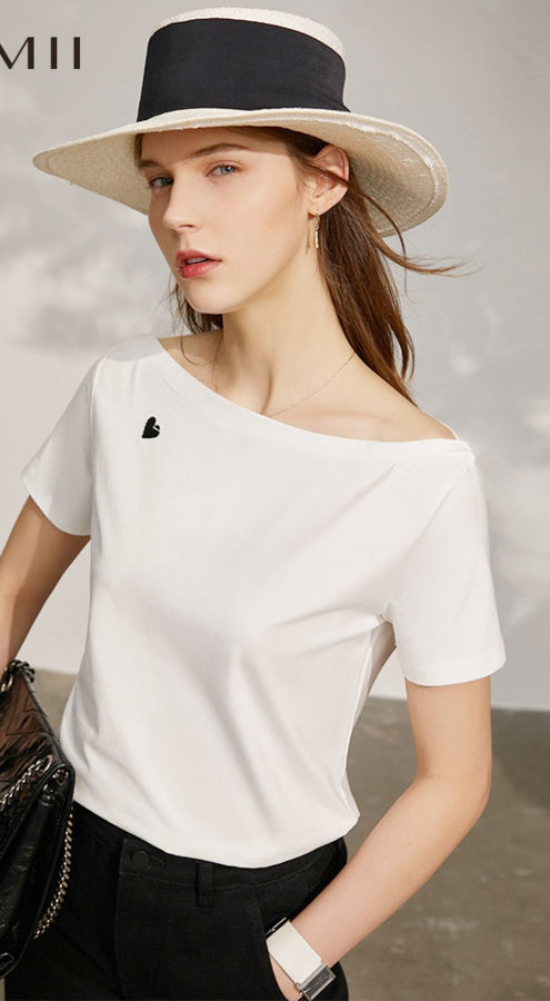 Summer Tshirt For Women Causal Embroidery Letter Printed Slash Neck Slim Fit Women’s Tshirt Tops 12260027