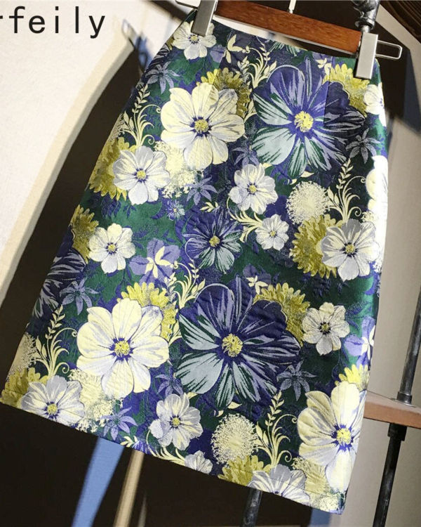 Summer Women Mini Skirt Retro High Waist Short Commutes Korean Version Style Floral Solid Fashion Zipper Skirt