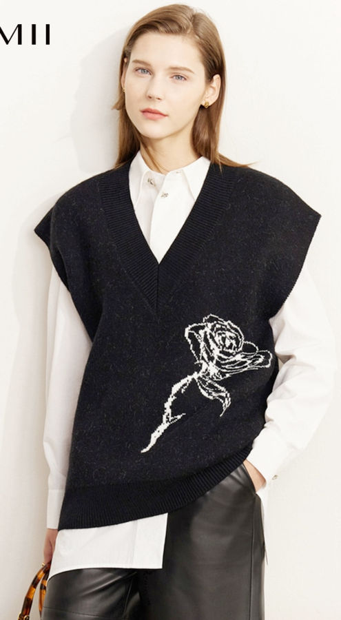 Sweater Vest For Women Autumn Casual Fashion Loose Rose Jacquard Design Knitted Pullover Tops 12270295