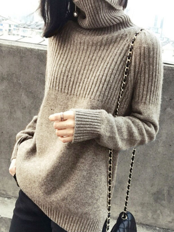 Sweater Women Turtleneck Pullovers Solid Stretch Striped Korean Top Knit Harajuku Fall Winter Clothes Beige Khaki
