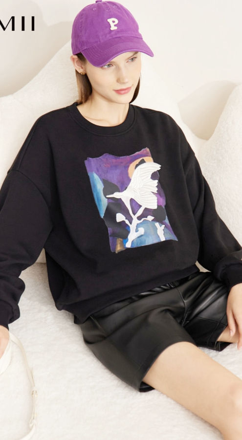 Sweatshirts Women Autumn Printing Design Loose Warm Commuter O-Neck Fashion Pullover Tops 12241314