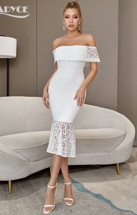 White Lace Midi Mermaid For Women Summer Off Shoulder Evening Wedding Club Party Female Dress Vestidos