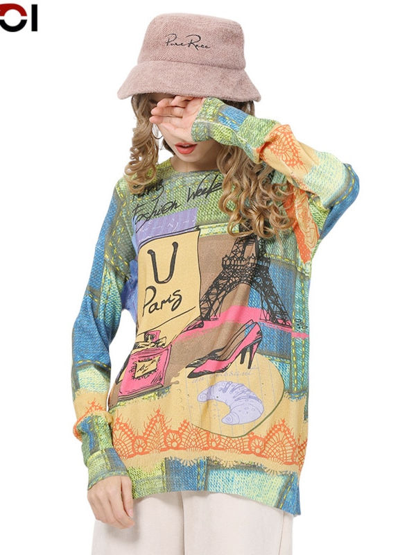 Winter Novel Print Sweater Women Pullovers Knitted O-Neck Jumper Women Oversized Warm Sweaters High Elastic Pull Femme