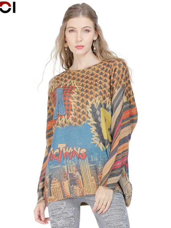 Winter Oversized Sweater For Women Warm Long Pullover Dresses Fashion Building Print Jumper Knitted Sweater Pull Femme