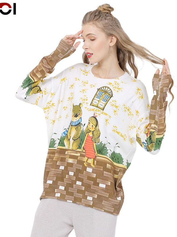 Winter Oversized Sweater For Women Winter Cute Bear & Girl Print Pullovers Jumper Women Fashion Knitted Pull Femme Clothes