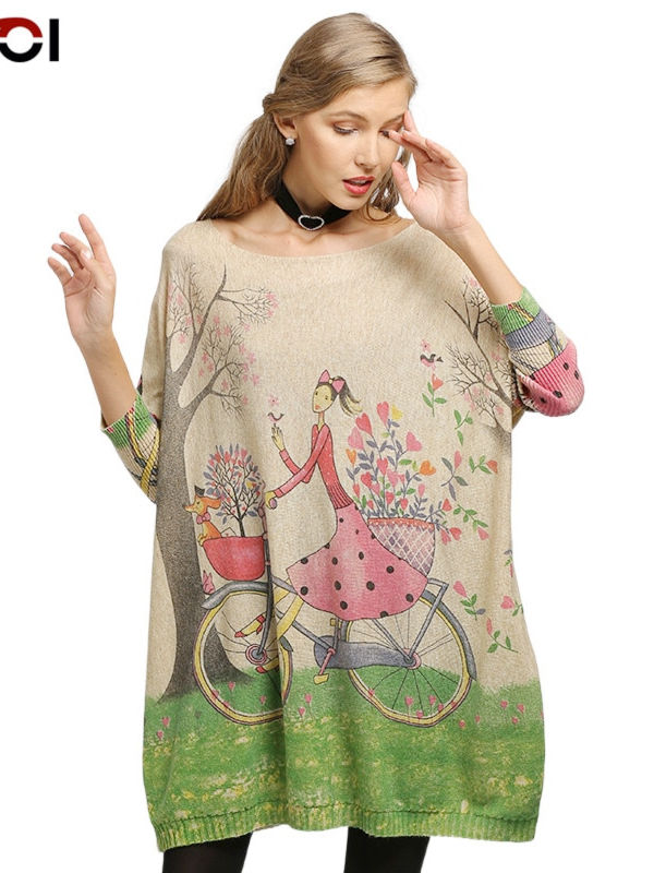 Winter Oversized Sweater For Women Knitted Pullover Dress Smile Lucky Girl Print Pull Femme Beautiful Casual Loose Clothes