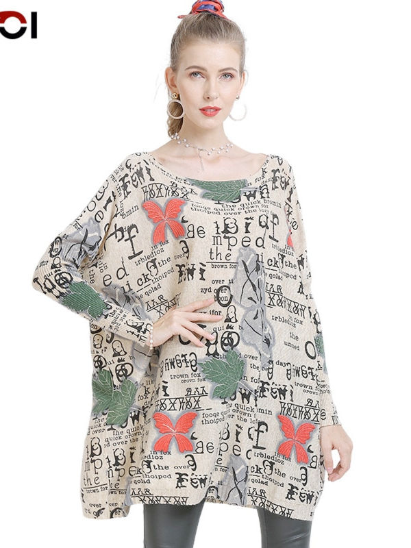 Winter Oversized Sweaters For Women Warm Long Pullover Dresses Fashion Letter Print Jumper Knitted Sweaters Pull Femme