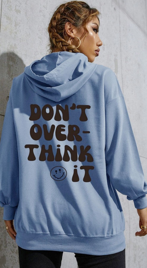 With Kangaroo Pocket Women Sweatshirts Solid Back Letter Print Drop-Shoulder Sleeves Loose Autumn Hoodies Casual Hooded Pullover