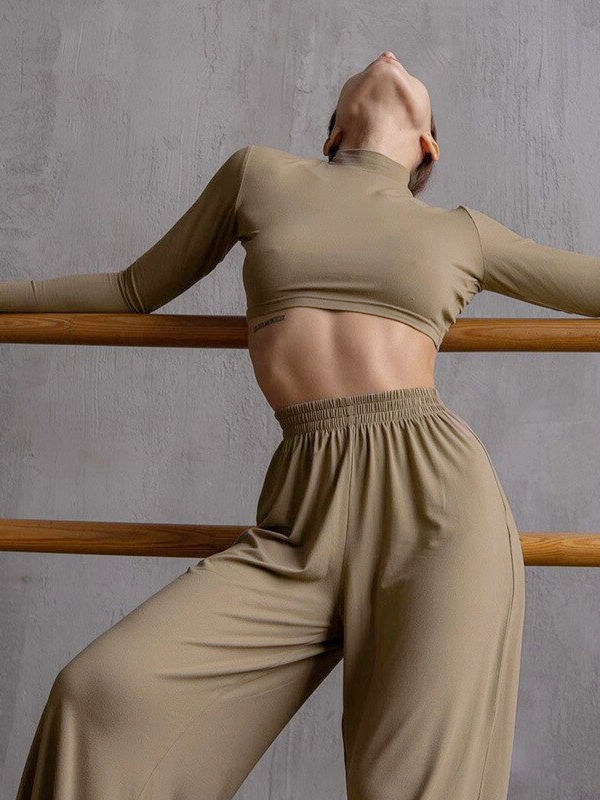 Women Casual 2 Piece Crop Top High Waist Wide Leg Long Pants Sleeve Sets Tracksuit Sport Loose Sweatsuits