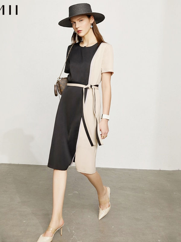 Women’s Dress Summer Offical Lady Oneck Patchwork Belt Women’s Chiffon Dress Causal Dress For Women 12140100