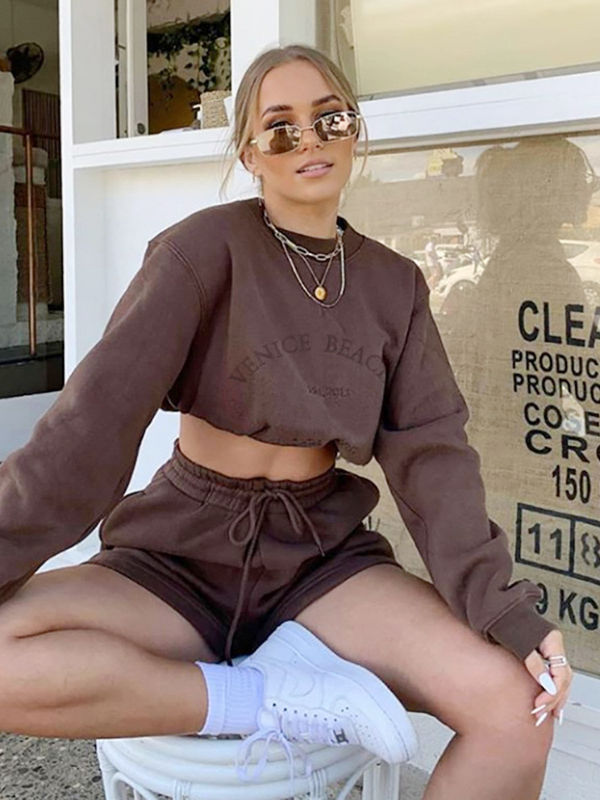Women’s Long Sleeve Thick Loose 2 Pieces Tracksuit Shorts Loungewear Letter Hoodie Casual Outfits Conjunto Feminino